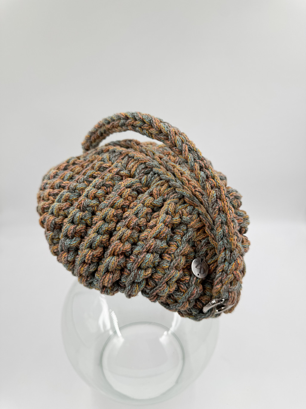 Kézzel horgolt, egyedi, Velence idézte, kagyló alakú táska, amely különleges formájával igazán figyelemfelkeltő. Praktikus méretével ideális a mindennapokra, miközben stílusos és játékos kiegészítője lehet bármely öltözetnek.