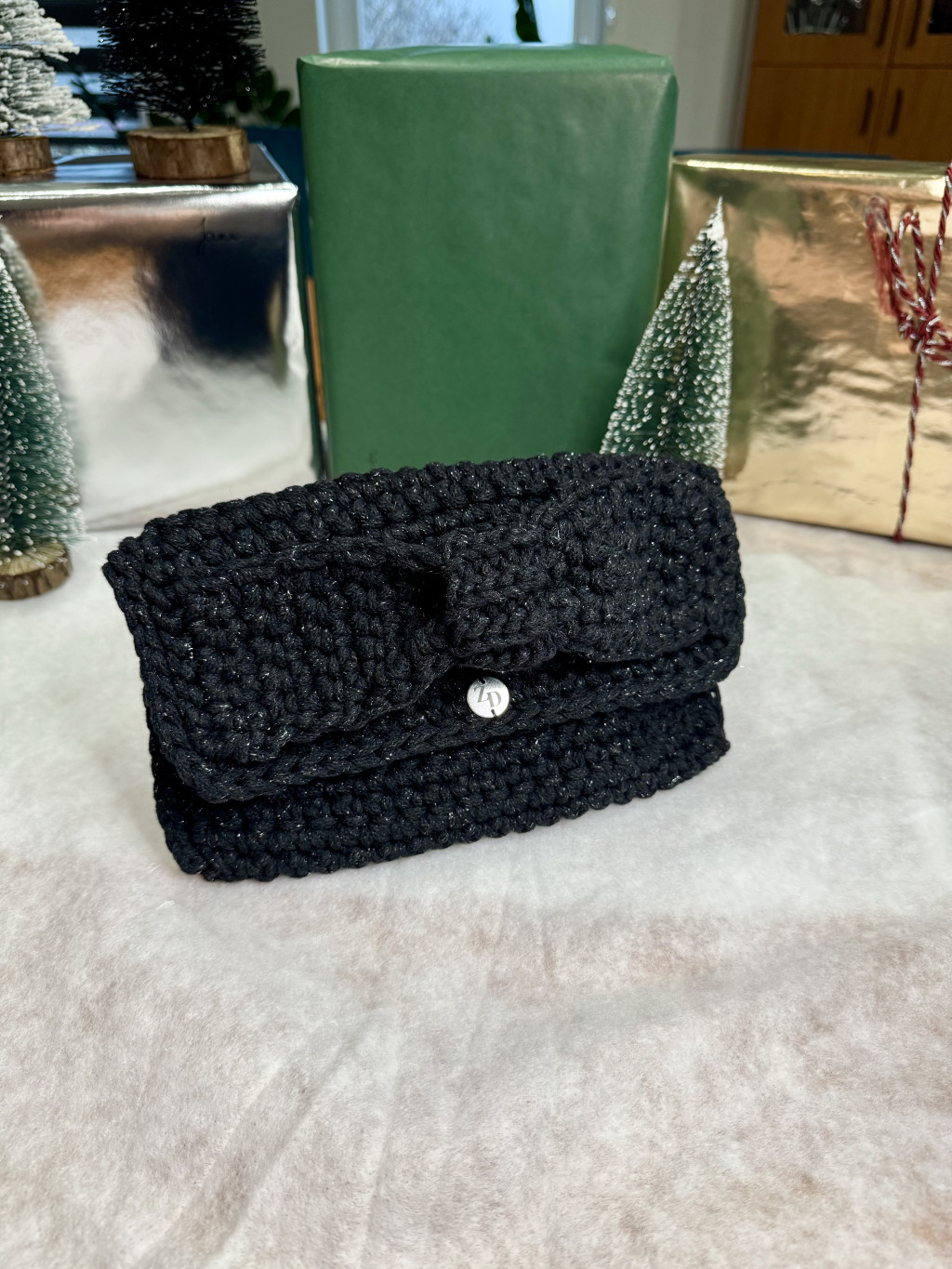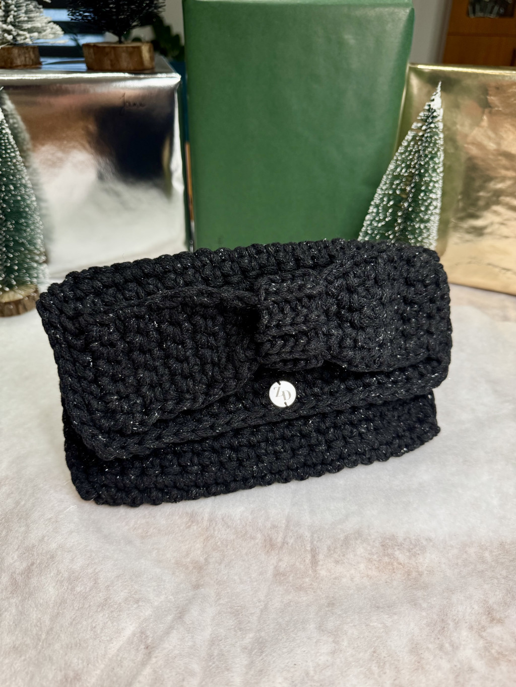 Légy ragyogó minden ünnepi alkalmon a Zabo design különleges, limitált kiadású horgolt táskájával! Ez az exkluzív darab prémium minőségű, finoman csillogó fekete fonalból készül kézzel, így minden táska valóban egyedi és megismételhetetlen.